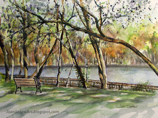 Watercolor Painting: Coe Lake Boardwalk Shadows, Berea OH 11" x 14"; matted: 16" x 20" Original Painting SOLD; Reproduction Prints available upon request |